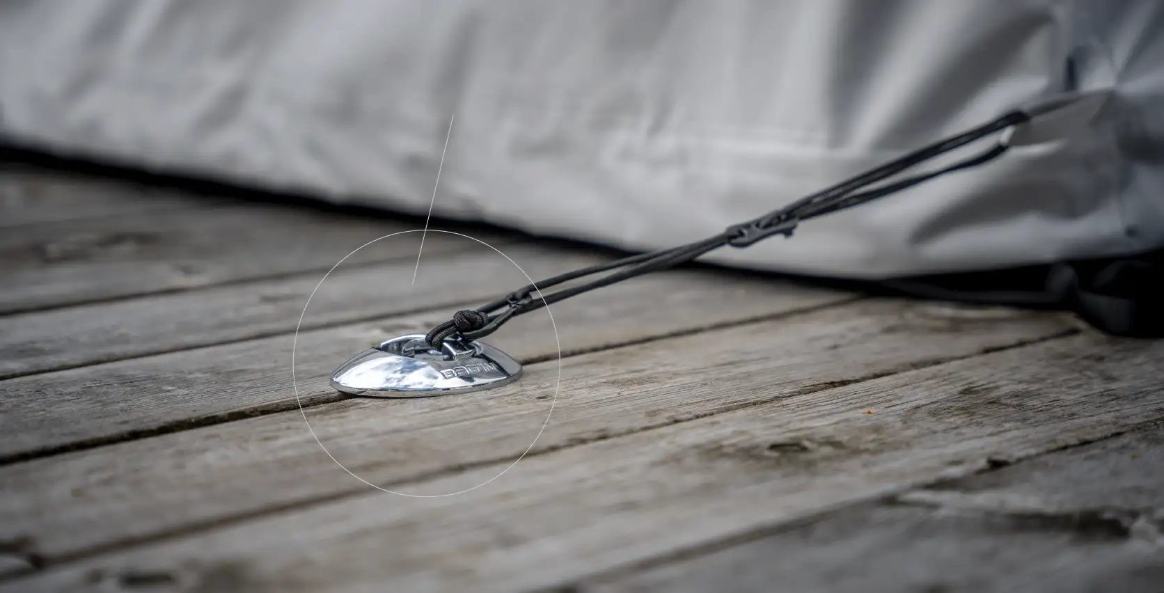 Mit dem großen Anker in jeder Ecke wurde der Bag'in unter Hurrikanbedingungen in den Böen getestet – und hat den Test mit Bravour bestanden!